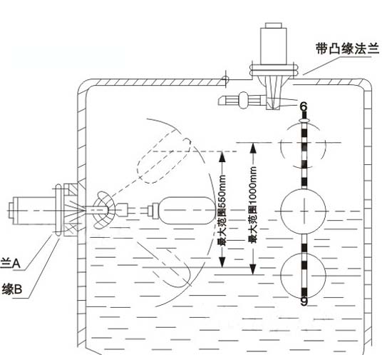 1、UQK型浮球液位控制器采用非標(biāo)準(zhǔn)凸面法蘭與被控容器相連接,用戶在安裝時(shí),應(yīng)根據(jù)圖示。凸面法蘭尺寸配置相應(yīng)的凸緣B。