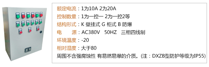 (3)周圍不含強腐蝕性 有易燃易爆的介質。(注:DXZB型防護等級為IP55)