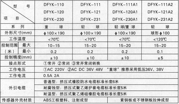 DFYK型浮球液位控制器適用于各種水池、水塔的液位控制,且特別適用于含有固體或半固體漂浮物的液體及帶粘性的污水水位自動控制與報警。