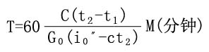 其中:T—加熱時間(分鐘)                  M—加熱水重量(kg)            G0—單位時間蒸汽耗量(kg/h)