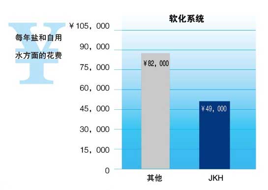 以進水硬度7.0mmol/L,流量為6.0噸/小時,每天運行16小時軟化器的運行為例,僅鹽耗和自用水耗2項,每年運行費用可節(jié)約3.3萬元,約為其他系統(tǒng)的40%。