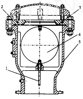 1、閥桿 2、閥蓋 3、密封座 4、浮球 5、閥體